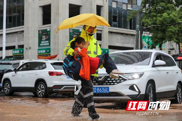见此情景,交警毫不犹豫地上前,将孩子抱在怀里,小心翼翼地护送到无积水地带,再返回去抱另一个孩子。一个,两个,三个……“自己撑好伞哦,别淋湿了。”亲切的嘱咐声中,所有困在路口的孩子都在交警叔叔宽厚的臂膀里,毫发不湿地到达了安全地带。