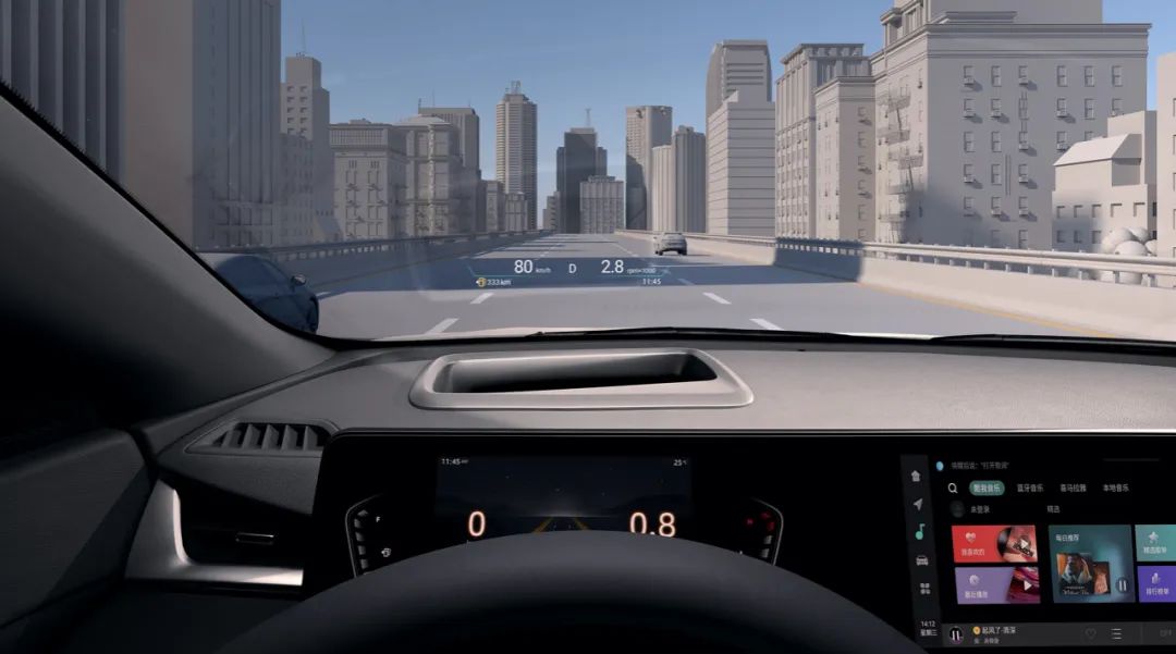 另外,新车还拥有AR-HUD功能,增强现实抬头显示科技,拥有7.5米远距虚拟成像能力,可以实现52寸超大投影,更具科技感。