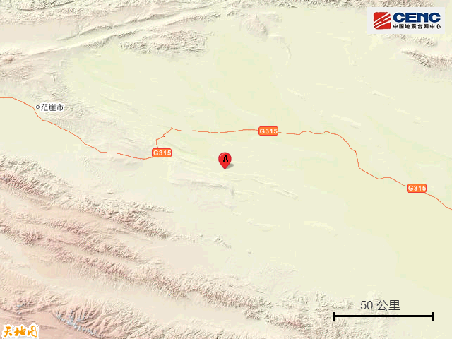 青海海西州茫崖市附近发生5.5级左右地震