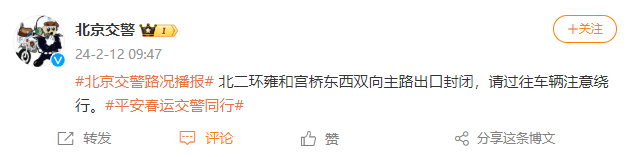 北京交警:北二环雍和宫桥东西双向主路出口封闭