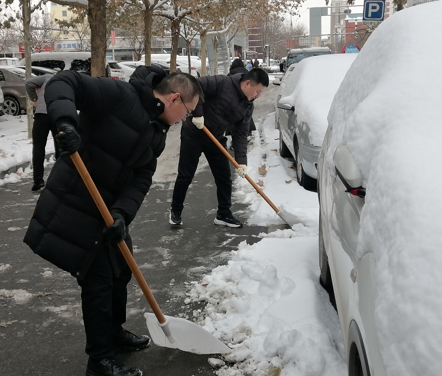 在河南周口,为方便客户出行和户外工作者前来阳光驿站休息,阳光财险周口中支员工一起助力,第一时间清扫积雪。