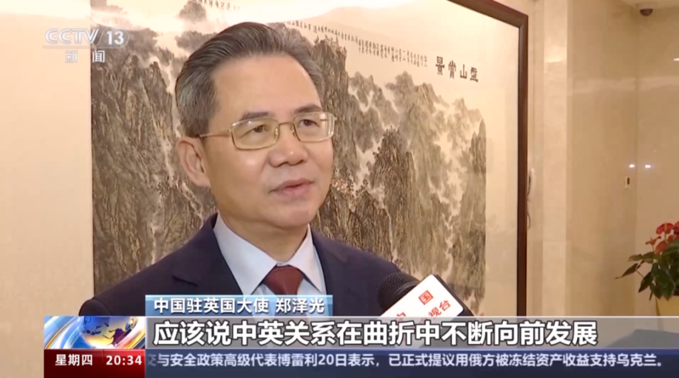 3月21日,中国驻英国大使郑泽光在接受央视采访时提到,“中英关系这些年发生了比较大的变化”“中英关系在曲折中不断向前发展”。