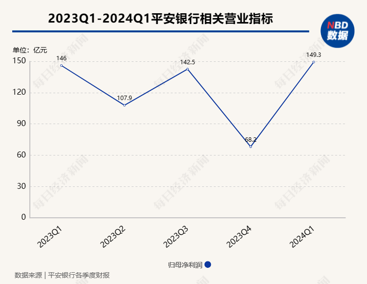 银行业务方面,2024年第一季度,平安银行(SZ000001,股价10.54元,2045亿元)实现净利润149.32亿元,同比增长2.3%。截至2024年3月31日,核心一级资本充足率上升至9.59%,拨备覆盖率261.66%。