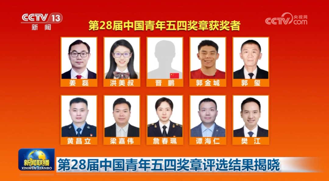 当日,央视《新闻联播》公布了第28届中国青年五四奖章评选结果,其中一位没有照片,只有胸前的五星红旗。