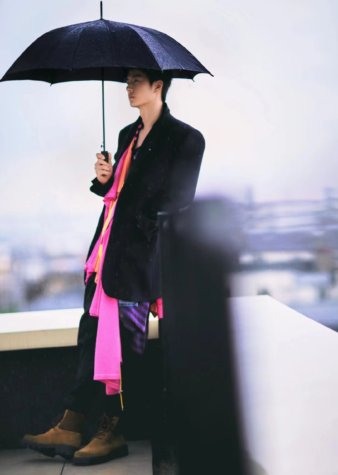 此前粉丝们猜测是否要官宣代言Loewe,在2025春夏巴黎时装周男装系列Loewe秀上亮相,恰好是王一博作为Loewe全球代言人的首秀。王一博身着Loewe 2024秋冬系列亮相大秀现场,黑色廓形西装裁剪分明利落,内部彩色装饰凸显个性风采,中和了黑色的冷冽,让穿搭更具有柔和鲜明感。细节图中也可以看出Loewe独特而繁复的裁剪工艺,充满包容性的品牌理念也与代言人不谋而合。