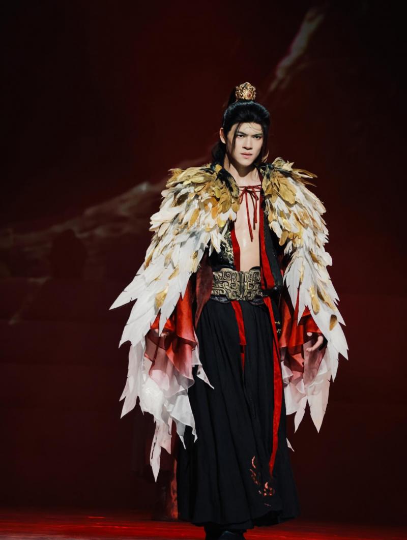 《翎衣》的剧名源自羽毛做成的华丽衣服,也指仙人的法衣,从古代神话而来,自带“仙侠味儿”,网感呼之欲出。舞剧《翎衣》由一件“翎衣”作为贯穿整个剧始终的线索,仙鹤为了报救命之恩,找仙师炼制了“翎衣”作为将军的铠甲,将军借助翎衣的力量,获得了战斗的胜利,而仙师则利用“翎衣”的力量,想要得到更大的权力而走向不归路……