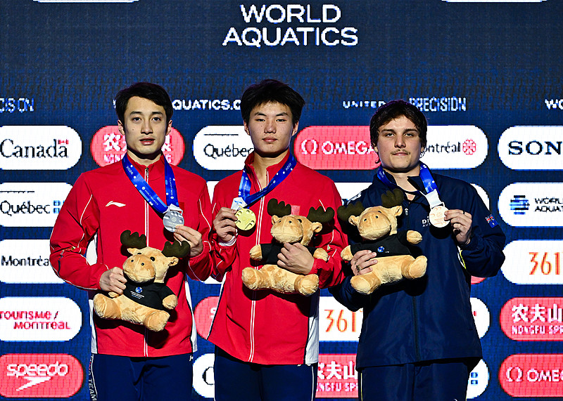 这一比赛日进行的第一项决赛是男子10米跳台,中国队出战的两位选手是新科全运会男子跳台金牌得主、25岁的练俊杰,以及18岁的白钰鸣。两人在预赛中的名次分别是第一、二名,但得分并不高,练俊杰将将突破了500分,而白钰铭还没有跳出500分的成绩,这与新赛季第一场比赛尚未完全发挥能力有关。决赛中两人都跳出了较高水平,得分也回到了正常,白钰鸣的表现更为出色,以543.55分轻松夺冠,练俊杰落后10.80分获得亚军。