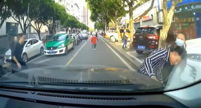 见此情形,一名出租车驾驶员立即在路边停车,第一个跑着冲上前来查看孩子情况。路过的市民、外卖小哥、抱着孩子的父亲……纷纷赶来帮忙,大家齐心协力抬起车辆。