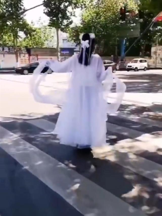 5月5日,一段视频在网上引发热议。视频中,一名身穿白色古装的女子骑平衡车在马路上穿梭,手里扛着一面印有广告的旗子。女子来到一处十字路口,麻利地拐进了右边道路,这一幕被后方车辆上的人拍下来。该视频引发网友热议,有人表示很为该女子的安全担忧。