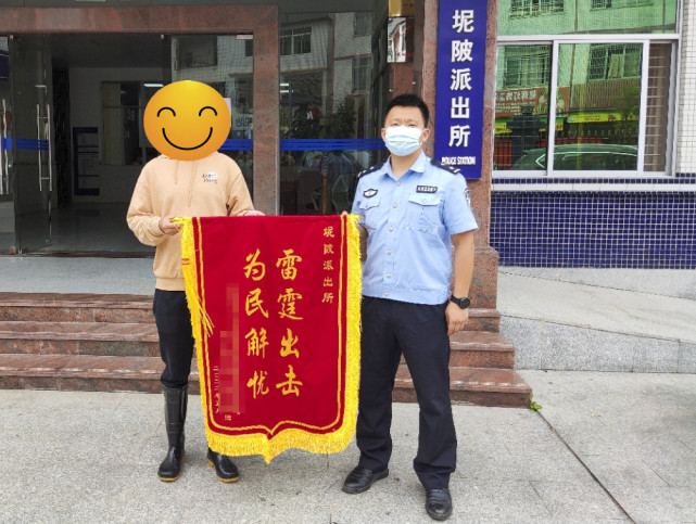 随后,坭陂派出所将被盗的11袋化肥归还事主。5月23日,事主为感谢民警快速侦破此案,专门送上绣有“雷霆出击,为民解忧”的锦旗表示谢意。