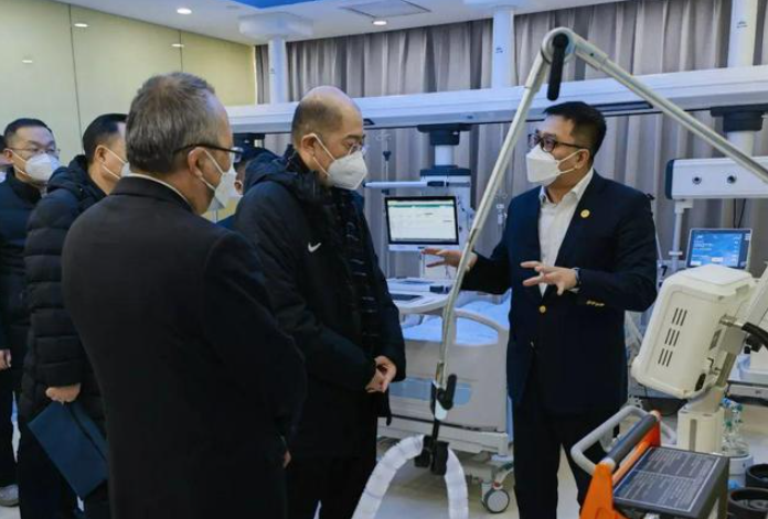 谭作钧先后查看了呼吸机装备生产线,了解了国产高性能ECMO(体外膜肺氧合)系统研发进展、指夹式脉搏血氧仪生产和扩产情况以及便携式通用生命支持系统生产能力和注册审批进度等。