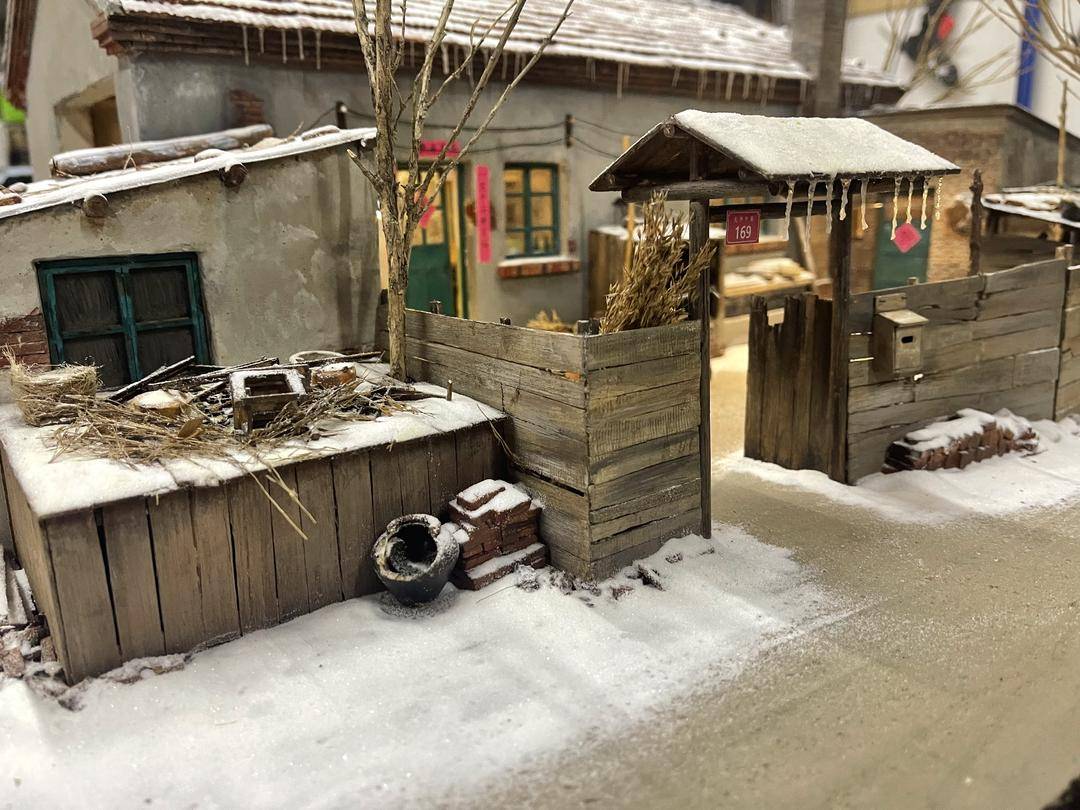 他的视频里满满都是“家”的味道,李寿升热衷于复原影视剧里的经典之家。比如上一次引发关注,就是他复原《人世间》里的“老周家”。脱落的水泥外墙裸露着些许红砖、二八自行车静静停放在院子中间、屋檐上垂下来的冰溜子闪烁着晶莹的光……不足1平方米的微缩模型,带大家重温《人世间》带来的全民感动。除了《人世间》,他还制作了《武林外传》同福客栈、《乡村爱情》里的大脚超市、谢广坤的院子、国家跳台滑雪中心“雪如意”、江南水乡周庄等场景的微缩模型。