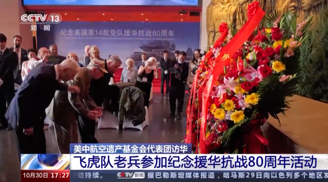 10月30日上午,由美国飞虎队老兵及其后代等组成的美中航空遗产基金会代表团还去了中国人民抗日战争纪念馆,出席纪念美国第十四航空队援华抗战80周年活动。