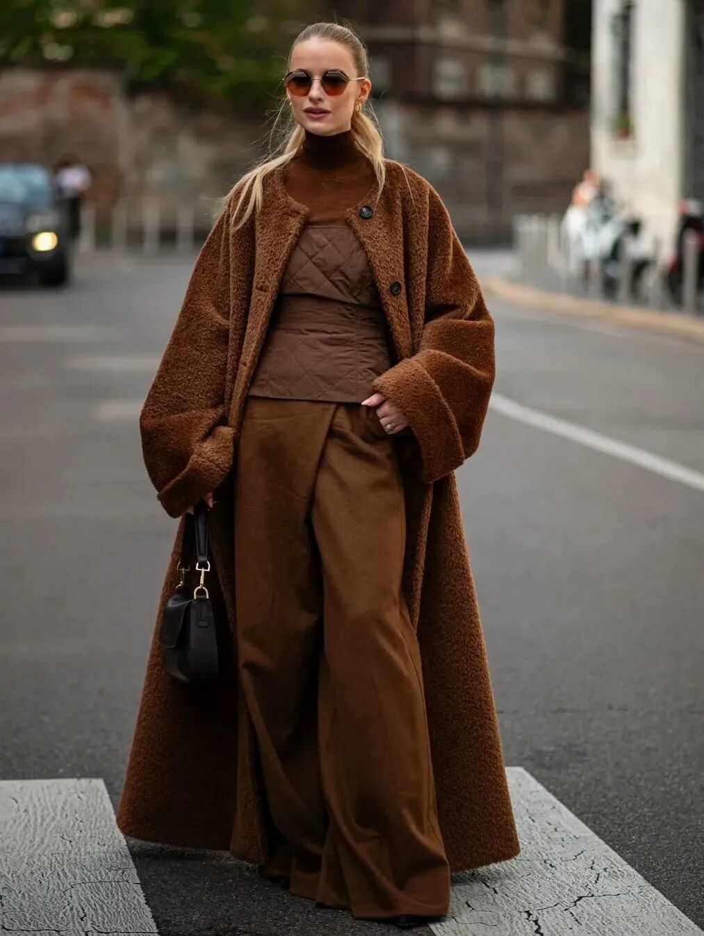 丝滑融入到棕色调的ootd中,视觉舒适度极佳。同样的色调同步过渡到乐福鞋、长靴上,可以解锁美拉德配色下更为丰富的风格。