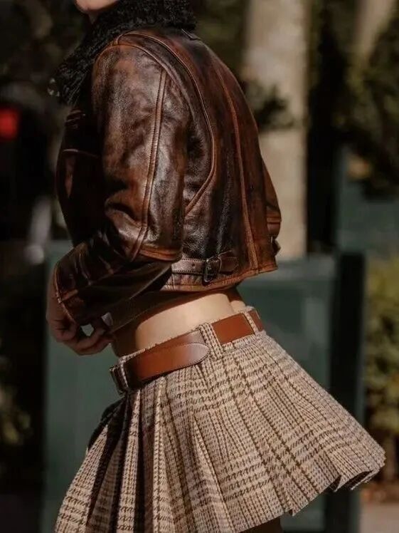在皮革单品里,挑选肌理、色质别致的款式,可以让自己的美拉德风格脱颖而出。MIU MIU皮夹克强烈的做旧效果、颗粒感的肌理呈现出粗糙的力量,早已经成为时尚博主们的心头好。