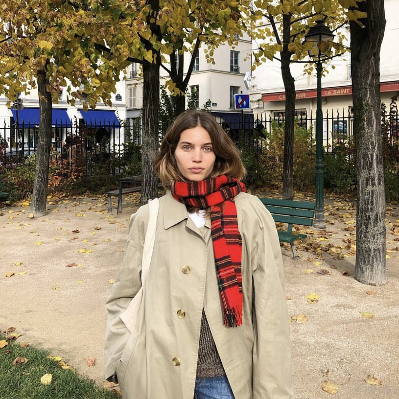 以纯色系单品为主的美拉德,如若加入一到两件花色单品,也能有四两拨千斤的效果,好比一条亮眼的格纹围巾。