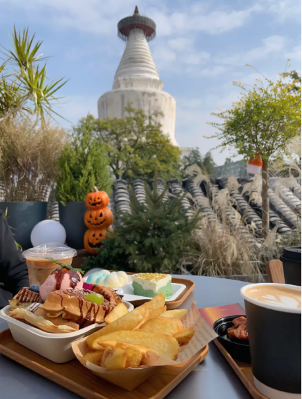 坐在露台上,感受着微风和缕缕阳光,看着四九城的烟火气息,闹中取静,点上一杯咖啡,配上几碟甜品,视线的余光瞟见几只慵懒的猫,这一刻,忘记了所有的不快乐,只想把时间定住。作为最出片的几个打卡地之一,有太多人慕名而来,保存住那一瞬刹那的美好,美景美食,不可辜负。