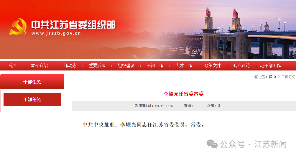 李耀光任江苏省委常委