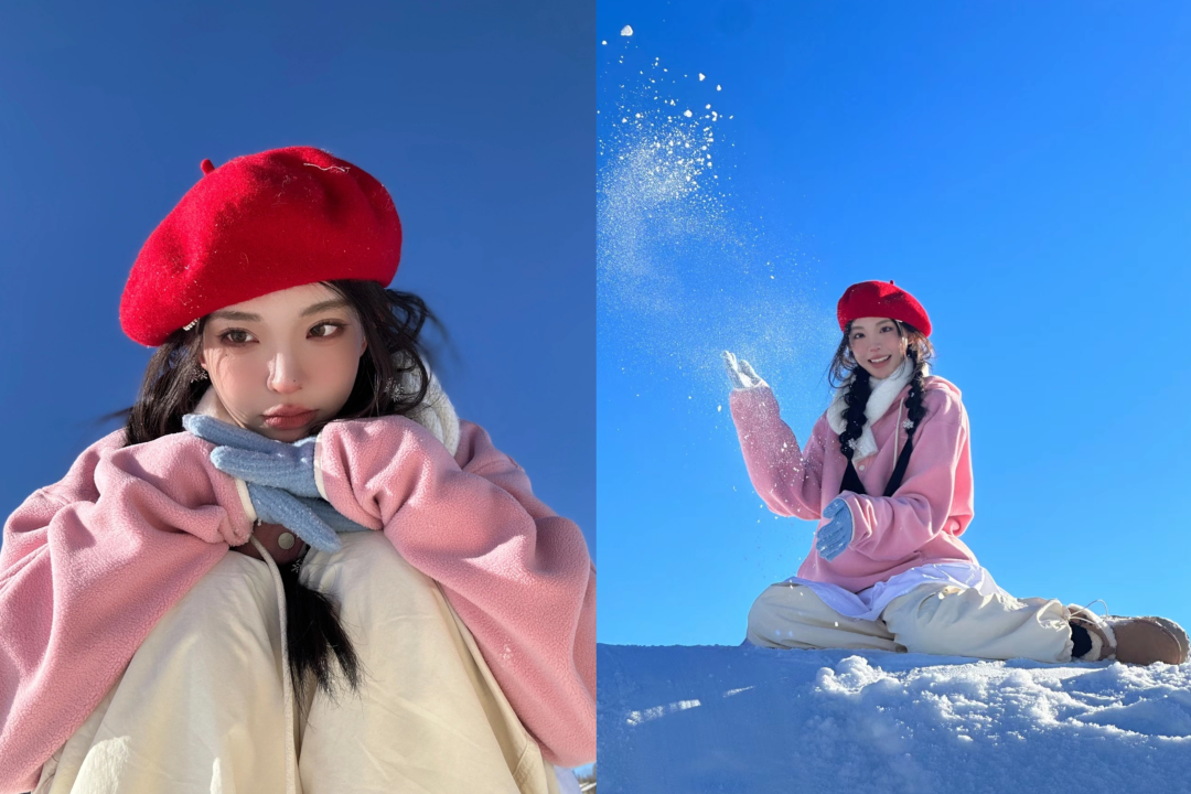 杨超越的雪地大片穿搭,在等初雪拍照的朋友们记好笔记,拿捏初雪大片。天蓝色的阔版型摇粒绒外套将整个人包裹在温暖舒适里,内搭深蓝色毛衣给浅色的画面赋予了一点亮色,同色系的耳罩在一片雪白之中蓝色的毛绒绒更显得有氛围感。