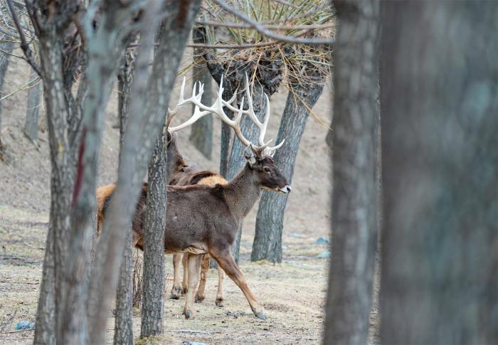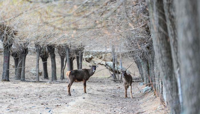 这是3月15日在西藏山南市乃东区结巴村拍摄的白唇鹿。