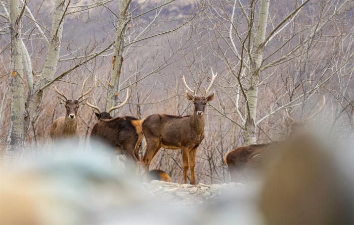 视窗|西藏山南:白唇鹿漫步山林