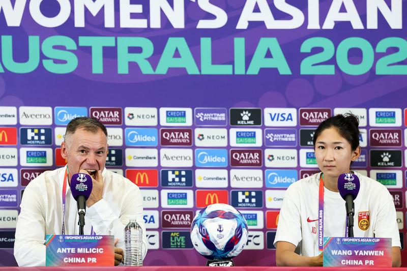 第21届女足亚洲杯半决赛中国女足与澳大利亚女足的比赛将于北京时间3月17日晚6点在珀斯体育场举行。16日中午,中国女足主教练米利西奇携队员王妍雯出席了赛前新闻发布会。