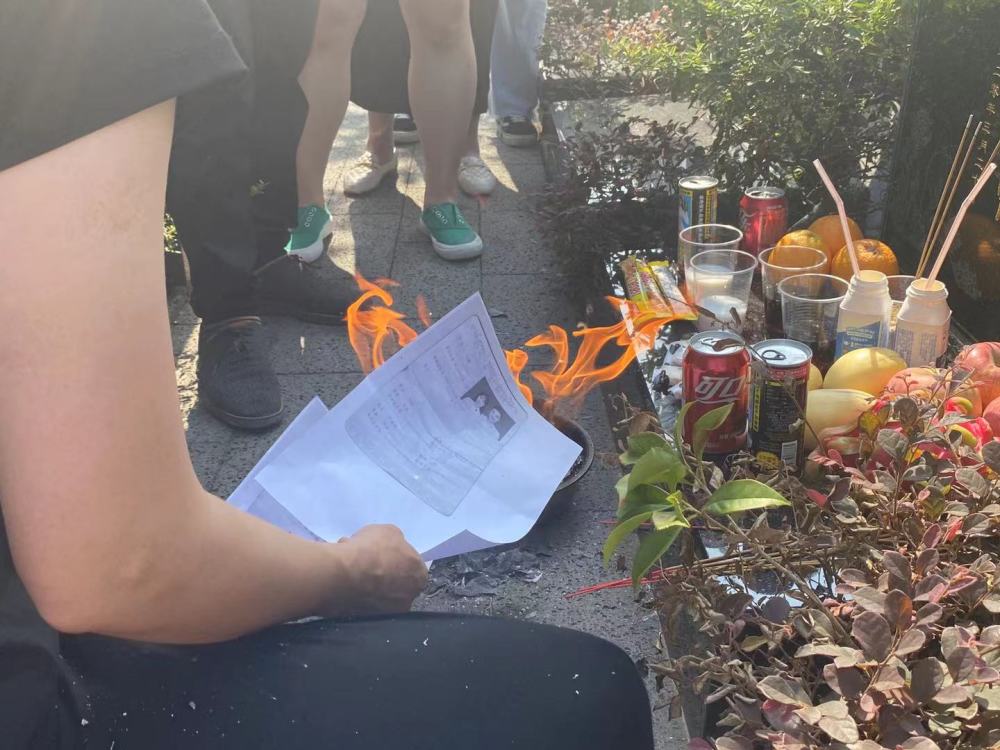 墓前,父亲将判决结果念给了女儿,并将判决书及结婚证的复印件一同烧烬。他们告诉逝去的女儿:“结婚证帮你烧掉了,从今以后,你和这个畜生再也没有关系了……自己照顾好自己。”