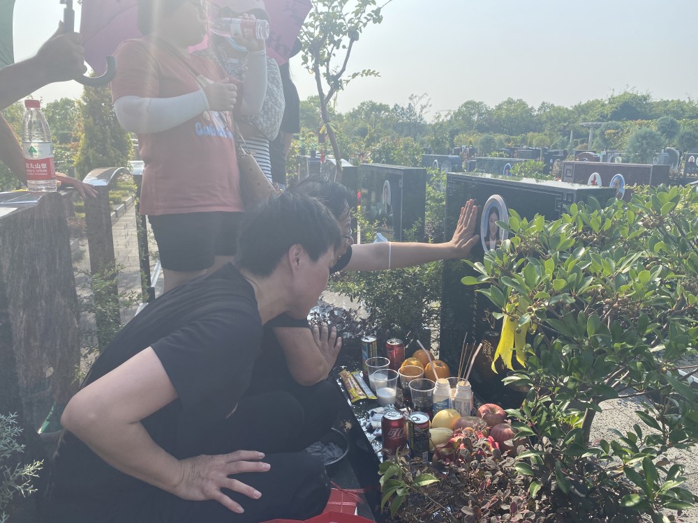 刘某父母将女儿爱吃的零食一一撕开包装,放在墓前,每种都放了两份,也祭奠女儿肚子里的小生命。