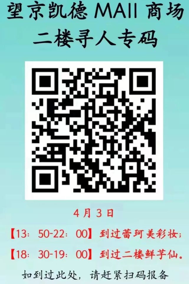 在此,再次提醒广大市民朋友,近期非必要不要前往望京、酒仙桥地区相关风险点位周边。同时,3月27日—4月3日到过望京SOHO小金阁阁服装店人员;4月3日13:50—22:00到过广顺北大街33号蕾珂美彩妆人员;4月3日18:30—19:00到过广顺北大街33号鲜芋仙人员,请赶紧扫码报备。
