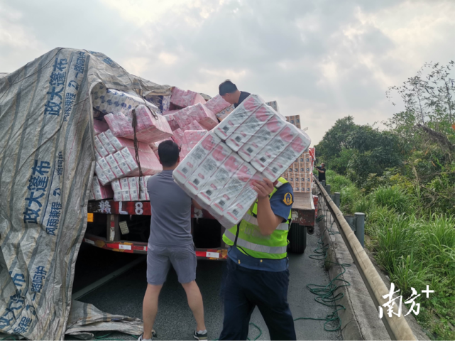 货车侧翻4吨橙洒落二广高速,路警联手3小时捡还