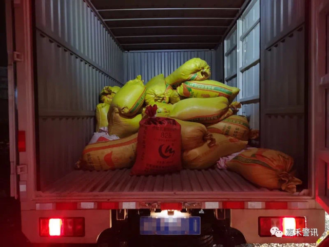 当晚10时许,嘉禾县公安局普满派出所民警接到相关线索后,冒着大雨驱车穿越崎岖的山路来到了普满乡某村,将这名正在忙着“卸货”的司机抓了个现行,当场查扣车辆一台和还没有来得及卸下的部分饲料,随后民警又在该货车司机开办的养殖场内发现了堆满了墙角的饲料。