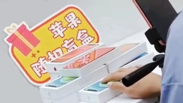视频直播里,卖货员时不时将镜头对准桌上iPhone 11/12/13手机的包装盒,大声喊道“绝对不是苹果5678那些过时货!”。不一会儿,售价398的手机“盲盒”被抢购一空。