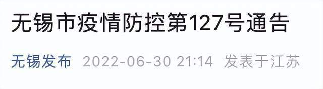 6月30日晚,无锡市疫情防控第127号通告发布。