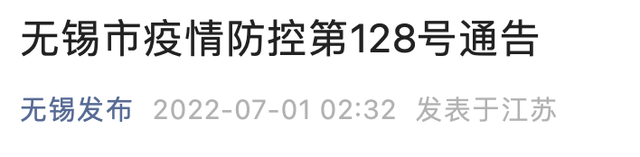7月1日凌晨,无锡市发布疫情防控第128号通告。