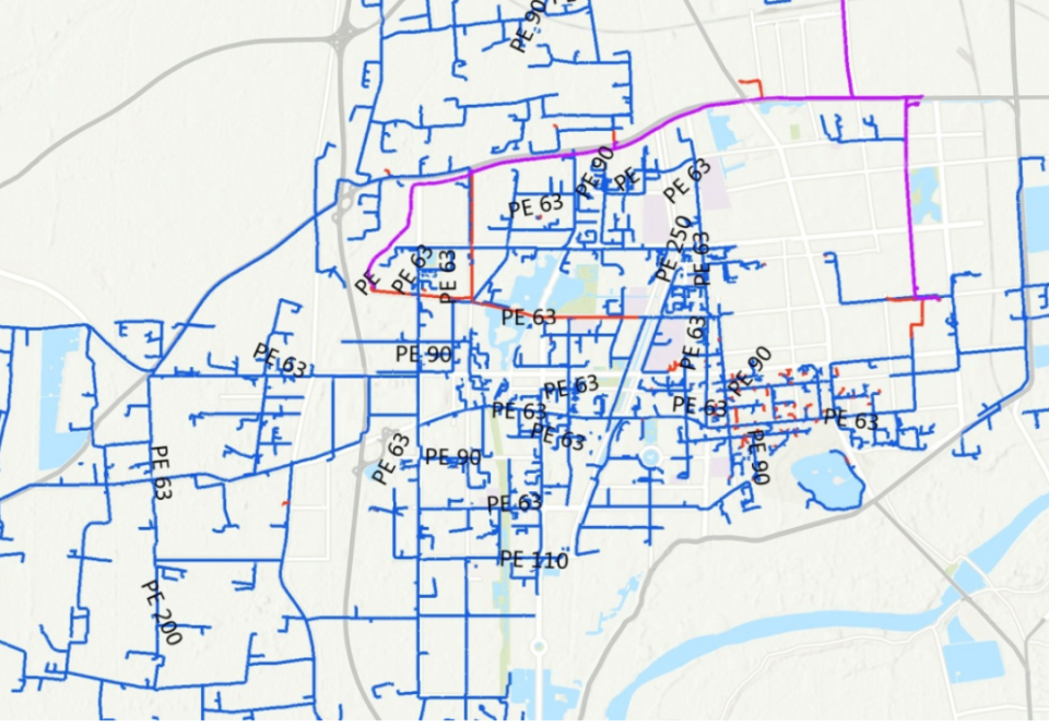 △境外地理信息系统软件绘制的城市管网图