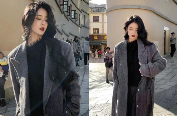 第一套高智美女风,灰色的毛呢大衣上身具有韩剧氛围感,展现出高智慧女性气质,Allgrey的格雷系女孩是智性优雅的代表,气场全开,在工作中展现理智优雅形象。