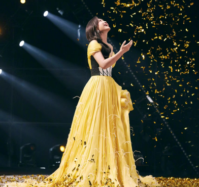 在电影《热辣滚烫》的热辣蜕变曲《一切都来得及》MV里面,贾玲实现了她所想要的大波浪卷发,身穿黄色晚礼服,空中飘下来的金黄色亮片仿佛是在为她鼓舞喝彩,犹如打完胜仗归来的女将,聚光灯下的她更加自信舒展!