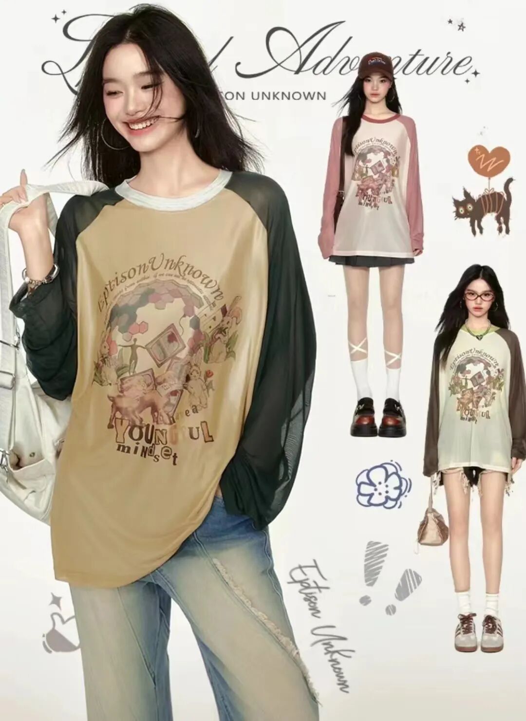听说透视感网纱还能可爱又复古?宽松卫衣版型的网纱上衣,休闲又随意,更加不挑身材,具有包容性,网纱也是高密度微透型,更适合休闲穿搭。