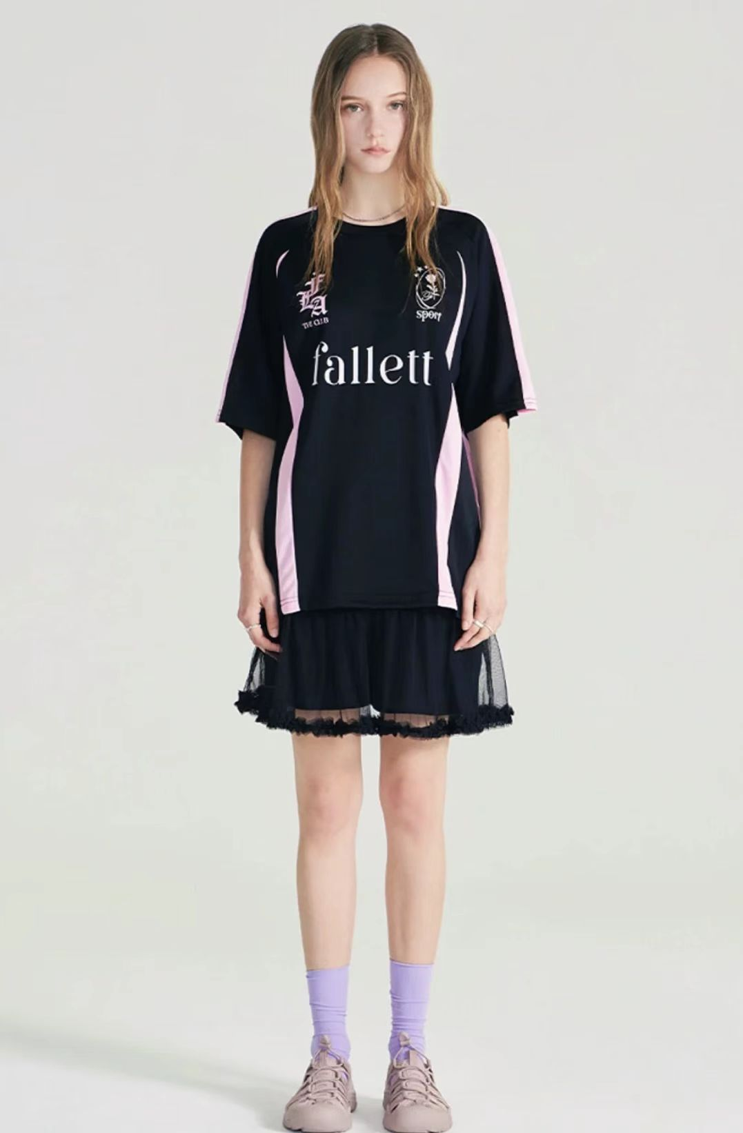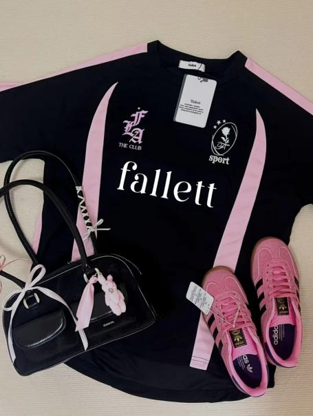 听说球衣还能芭蕾风?Fallett爆款球衣,黑粉配色,甜酷十足。相比起常规款球衣设计,fallett更加修身少女感,下搭百褶裙或蛋糕短裙都能穿出俏皮少女感,搭配设计感牛仔裤又是另一种帅气街头范,一衣搭配出多种风格,不愧是韩女超爱款!