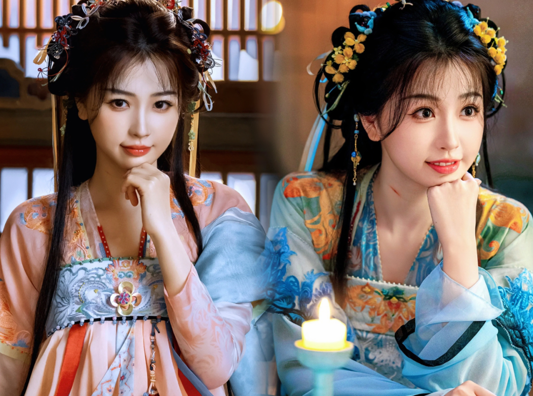 虞书欣饰演的穿书女配凌妙妙,古装妆造中凌妙妙机灵可爱,妆容精致而自然,融入了现代的时尚妆容风格,恰到好处展现角色的甜美。发型多采用传统的发髻和发簪,贴合凌妙妙的角色个性,多采用双发髻以及色彩亮丽的发簪发饰,珠花运用了诸多花果元素,且采用非遗绒花,角色造型更加灵动俏皮,与服饰的搭配极为和谐。凌妙妙的服装配色丰富大胆却和谐,刺绣花纹的服装细节并结合各种丝带串珠,角色的妆造养眼讨喜。