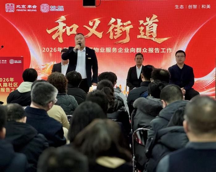 1月23日,北京市丰台区和义街道和久路社区牵头召开物业服务企业向群众报告工作会。