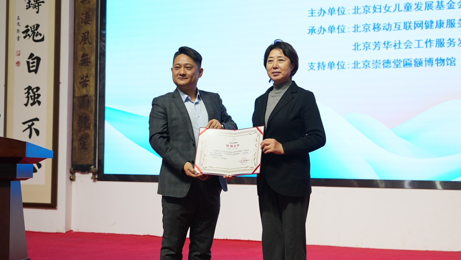 活动现场,北京妇女儿童发展基金会秘书长孙兆萍为北京朝阳门中西医结合医院颁发捐赠证书,表彰其在公益事业中展现的责任担当与爱心善举,随后双方共同为“心光计划”项目揭牌,标志着该公益项目正式启动、全面落地。