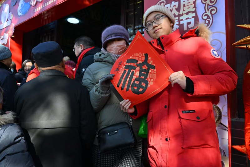 本次活动以中华龙砚为文化基座,以“骏马传福”为情感纽带。活动现场,市民游客在中华龙砚前有序等候,书法家们将新春祝福凝于笔端,或为市民“量身定制”蕴含深意的作品,或在“福”字中融入创意意象。领取到“福”字的王先生欣喜道:“在龙砚前拿到手写祝福,年味十足,新年福气满满!”