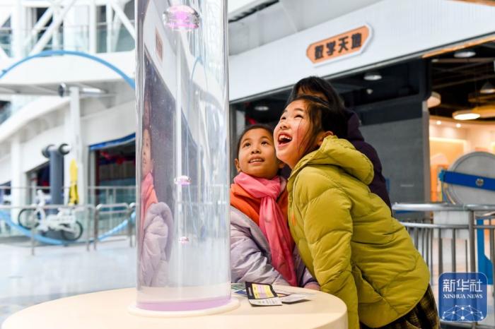 小朋友在江苏泰州科技馆体验科学实验装置。新华社发(杨玉岗摄)