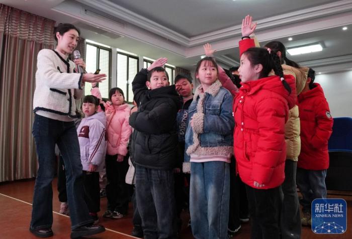湖北省歌剧舞剧院艺术教育中心,孩子们在舞蹈老师指导下排练舞蹈节目。新华社发(赵军摄)