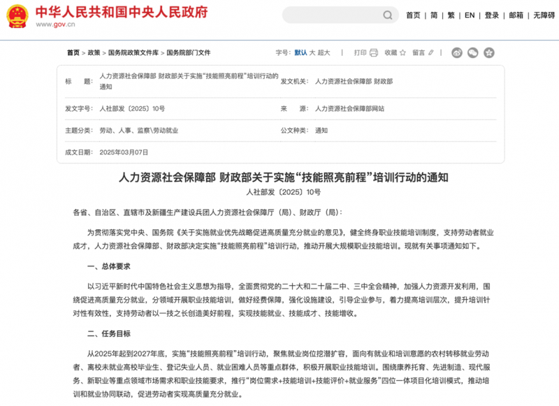 北按学校的火爆并非孤例,它恰逢国家大力发展职业教育的战略机遇期。2025年3月,人力资源社会保障部、财政部联合发布《关于实施“技能照亮前程”培训行动的通知》,明确提出从2025年到2027年底,面向农村转移就业劳动者、离校未就业高校毕业生等重点群体,围绕康养托育、先进制造、现代服务等领域,推行“岗位需求+技能培训+技能评价+就业服务”四位一体项目化培训模式。