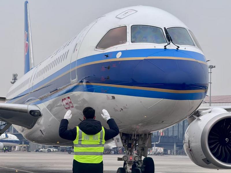 今年春运,南航使用国产机型执行航班约1.275万小时,同比2025年春运提高51.9%。其中,南航C919国产大飞机首次在春运期间实现广州、长沙双基地运行,第9架和第10架C919也在今年春运期间相继入列并投入运营,整个春运期间南航C919机型执行航班超1300班次,承运旅客超18万人次。