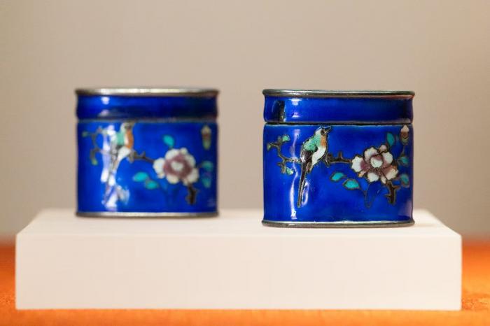 云南省博物馆藏,银胎掐丝珐琅花鸟小盒。