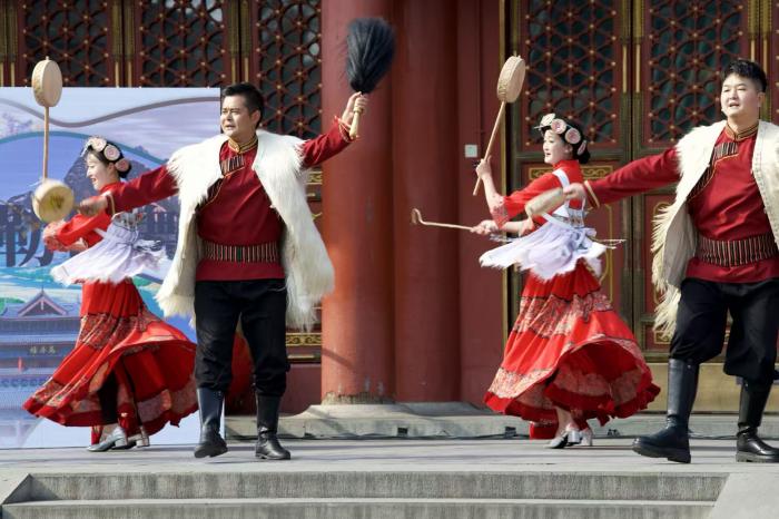 演员表演国家级非遗丽江纳西族《勒巴舞》 。
