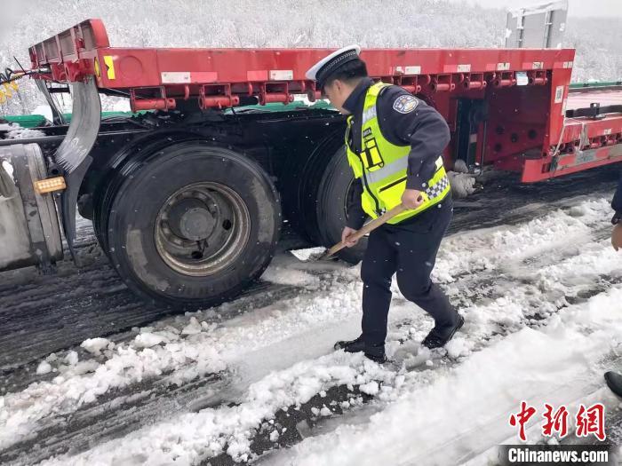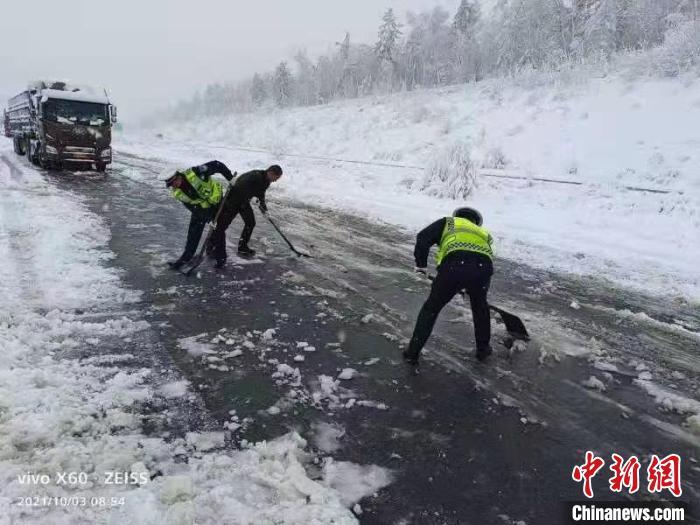 国庆假期冰雪突至 内蒙古交警紧急疏堵